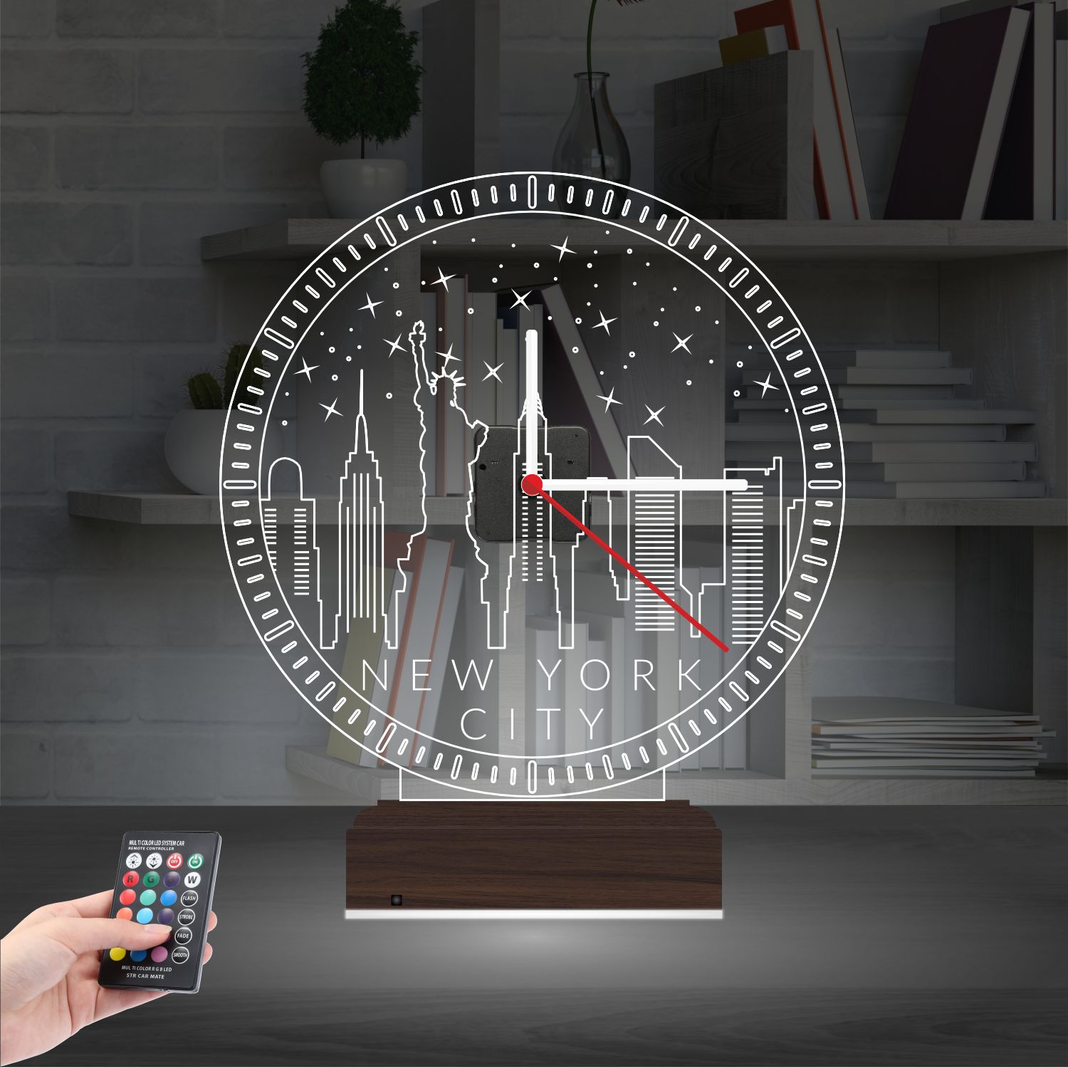 Мы объединили в одном дизайне художественный объект с изображением всемирно известной панорамы и функциональные часы. Этот современный светильник 3д со стильным циферблатом будет напоминать вам о темпе мегаполиса самым эстетичным образом. Главная особенность изделия — возможность сделать его полностью персональным, создав уникальный именной подарок. Благодаря передовым технологиям, эти лед светильники долговечны, не нагреваются и своим чистым светом привносят технологичный шик в любую обстановку. Для тех, кто устал от классических аксессуаров и ищет необычные подарки, этот светильник станет фаворитом.
