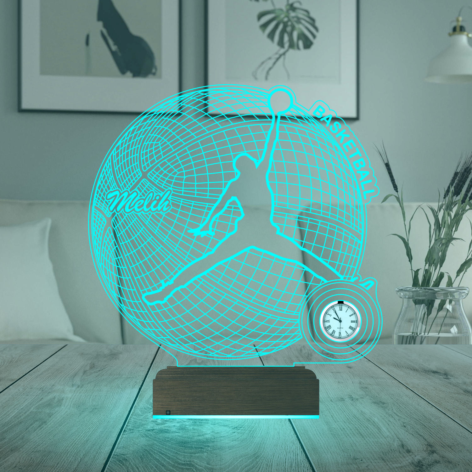Главное преимущество изделия — возможность нанести имя будущего чемпиона на акриловое полотно, что превращает обычные лед светильники в персональную награду. Современный светильник 3д создает парящую световую иллюзию объема, детально передавая контуры летящего игрока и текстуру баскетбольного мяча. Встроенные часы позволяют не пропускать важные матчи и тренировки, а оригинальный дизайн делает его идеальным светильником в подарок. Качественный светильник акрил с бирюзовым свечением служит долговечным аксессуором и отличным ночником, создавая уютную, но в то же время спортивную обстановку для отдыха.