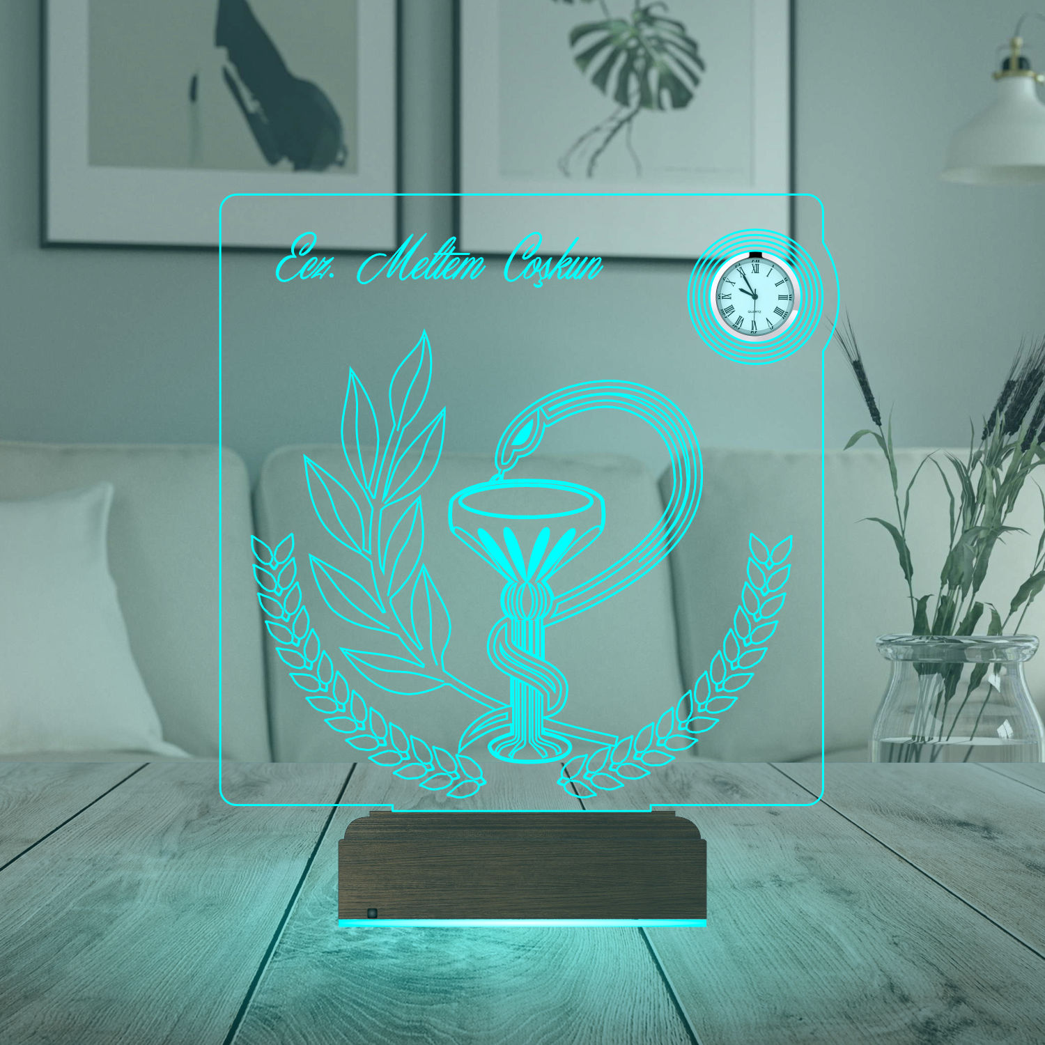 Аптека — это место, где наука встречается с заботой о здоровье. İmennoy подарок в виде классического символа медицины и фармации — чаши Гигиеи, окруженной лаврами, станет лучшим способом выразить признание профессионализму фармацевта. Если вы ищете идеи для подарка, которые подчеркнут статус специалиста и добавят современности в интерьер аптеки или личного кабинета, этот декоративный светильник с интеграцией часов создан именно для вас. Он наполняет пространство мягким бирюзовым светом, создавая атмосферу спокойствия и профессионального достоинства. Это по-настоящему необычный подарок, который символизирует мудрость и исцеление.