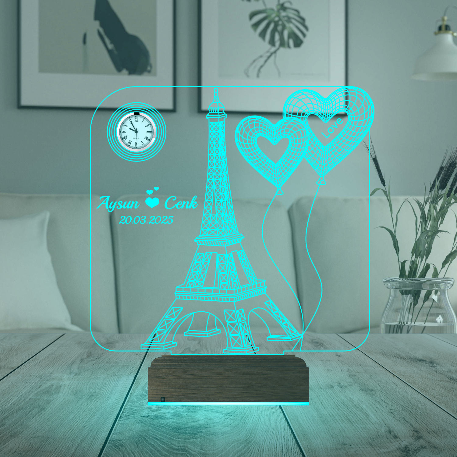 Париж — это город, где мечты о любви становятся реальностью. Именной подарок, объединяющий величие Эйфелевой башни и нежность двух парящих сердец, станет идеальным символом вашей истории. Если вы ищете идеи для подарка, которые способны передать всю глубину ваших чувств, этот декоративный светильник с интеграцией часов создан именно для вас. Он наполняет комнату мягким бирюзовым светом, создавая атмосферу французского шарма и романтики в вашем доме. Это по-настоящему необычный подарок девушке, который заставляет сердце биться чаще каждый раз, когда загораются огни "ночного Парижа".