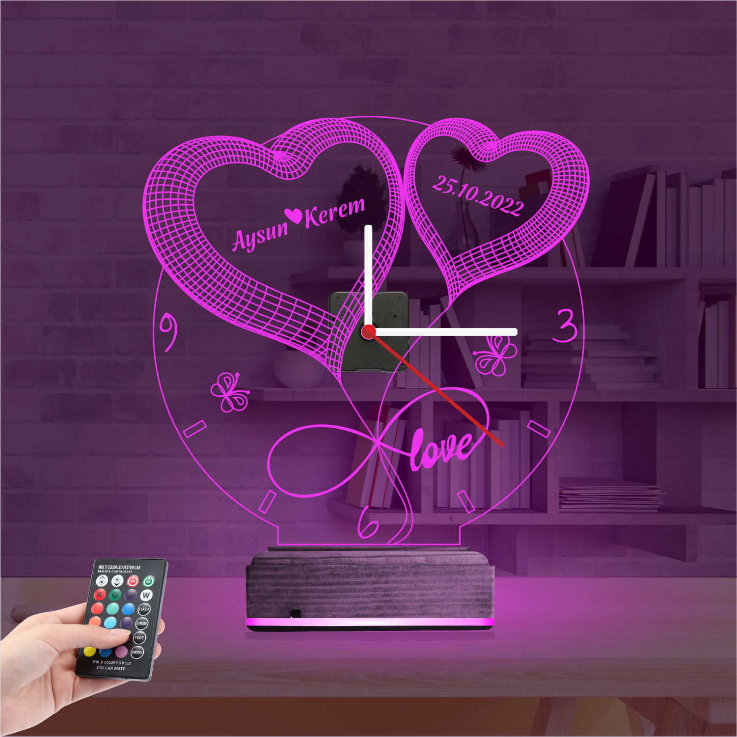 Объединить в одном дизайне вещь, которая рассказывает трогательную историю, и функциональный предмет для отслеживания времени — это проявление особого внимания. Этот современный светильник 3д со стильными часами на корпусе наполнит смыслом каждую драгоценную секунду вашей любви. Главная особенность этого продукта — полная персонализация. Добавив ваши имена на одно сердце, а дату знакомства или годовщины — на другое, вы создадите уникальный именной подарок, который будет только у вас. Благодаря передовым технологиям, эти лед светильники совершенно не нагреваются и создают романтическую атмосферу своим мягким светом. Для тех, кто ищет необычные подарки, этот светильник в подарок станет самым ярким воплощением ваших чувств.