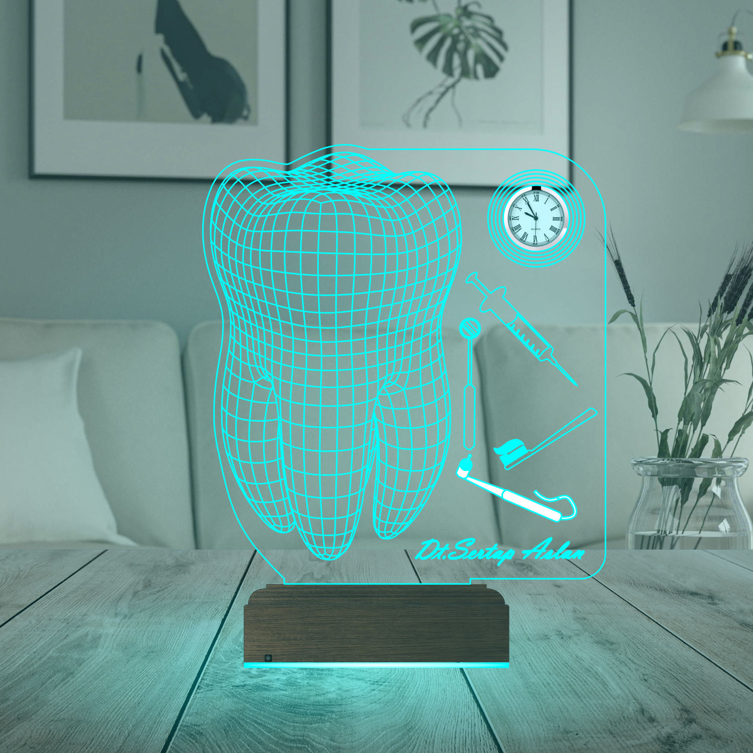 Красивая улыбка — это результат мастерства и преданности делу. Именной подарок в виде детально проработанного зуба, окруженного профессиональными инструментами, станет лучшим способом выразить признание стоматологу или зубному технику. Если вы ищете идеи для подарка, которые подчеркнут статус специалиста и добавят современности в интерьер клиники, этот декоративный светильник с интеграцией часов создан именно для вас. Он наполняет пространство мягким бирюзовым светом, создавая атмосферу спокойствия и доверия для пациентов и врачей. Это по-настоящему необычный подарок, который подчеркивает важность этой благородной профессии.